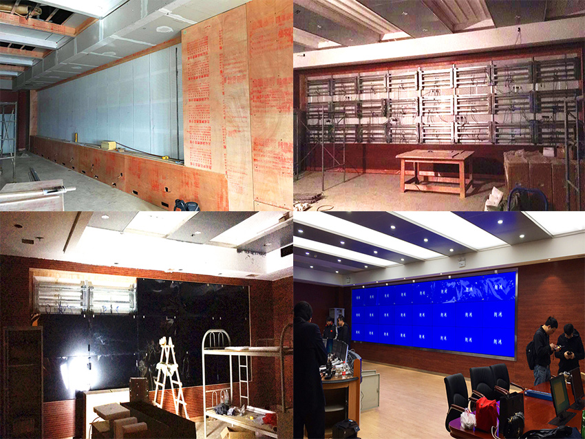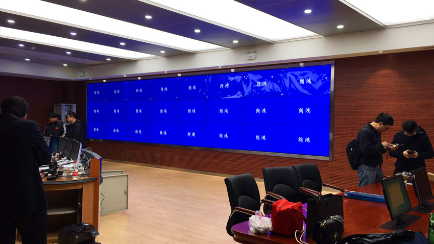此次項目較大較為復雜,時間緊任務(wù)急,要在指揮中心安裝兩套大屏,分別采用信弘55寸(S55-XHL1ME)1.8mm拼縫,3×8,24塊液晶拼接屏,和55寸(S55-XHL2ME)3.5mm拼縫,3×5,15塊液晶拼接屏,前維護安裝方式。為保證項目整體順利實施,信弘工程師克服了現(xiàn)場諸多困難,努力將細節(jié)之處做到完美,安裝、調(diào)試、驗收、培訓等都非常順利,在春運前順利完成施工。