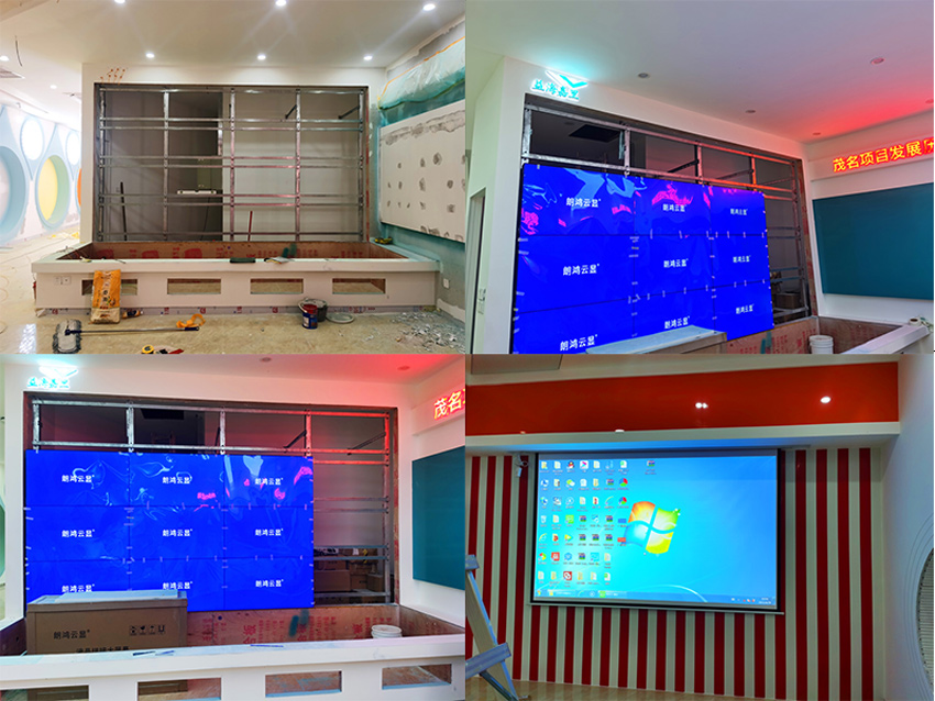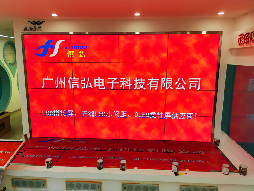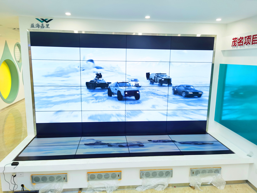 2021年1月底廣州信弘公司產(chǎn)品進駐益海嘉里(茂名)糧油工業(yè)有限公司展廳,本項目是采用46寸S46-XHL1ME 6X4的拼接方式,根據(jù)設(shè)計要求,整套拼接屏呈L型的拼接方式。其中16塊屏為常規(guī)的安裝方式,另8塊安裝在地面。